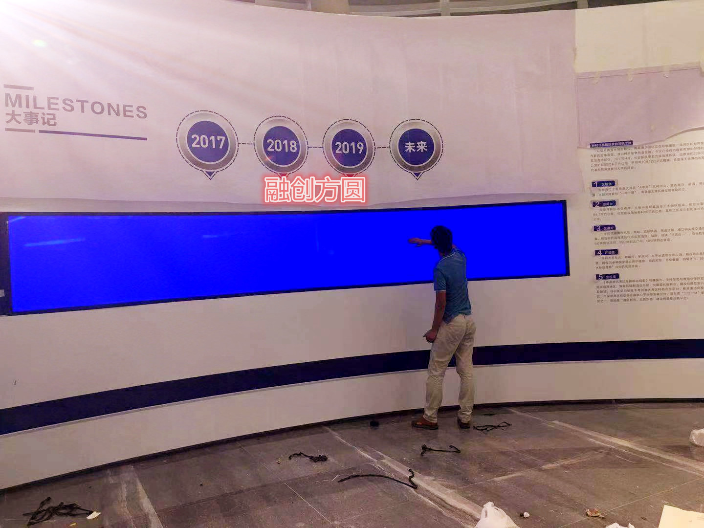 近2-3年來發(fā)現(xiàn)做拼接屏觸摸屏展示墻的需求都是往越大尺寸觸摸框拼接屏方向,同時(shí)還需要做成弧形拼接屏觸摸屏,融創(chuàng)方圓大尺寸紅外多點(diǎn)觸摸框技術(shù)不斷突破各種瓶頸,現(xiàn)在已經(jīng)很穩(wěn)定產(chǎn)品了,還可以做成弧形,矩形,直角,U形多點(diǎn)觸摸框滿足市場(chǎng)應(yīng)用需求;不同拼接屏加上觸摸框尺寸大小應(yīng)用場(chǎng)所不一樣,功能體現(xiàn)也會(huì)不一樣;像下面這套55寸1×4做成橫屏弧形觸摸拼接屏互動(dòng)墻應(yīng)用在東莞城市規(guī)劃展廳。1x41_55寸1×4弧形觸控屏拼接屏顯示硬件結(jié)合時(shí)間墻軟件以圖文并茂、觸摸交互,多方位的展示歷史、發(fā)展歷程等以時(shí)間為線索的信息,參觀人員可以通過在拼接屏弧形觸控一體機(jī)屏幕用手指或鼠標(biāo)點(diǎn)擊、移動(dòng)、拉伸時(shí)間軸或者時(shí)間文件夾,即可輕松瀏覽各個(gè)時(shí)間點(diǎn)上的事件。