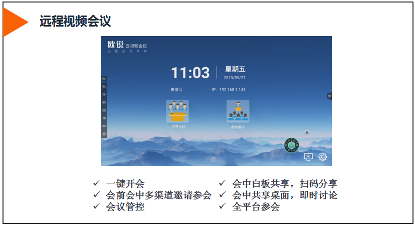 智能會(huì)議平板支持遠(yuǎn)程視頻一般都搭載遠(yuǎn)程會(huì)議視頻系統(tǒng),無論與會(huì)者身在何地,都可實(shí)現(xiàn)跨國(guó)跨地區(qū)實(shí)時(shí)召開會(huì)議。