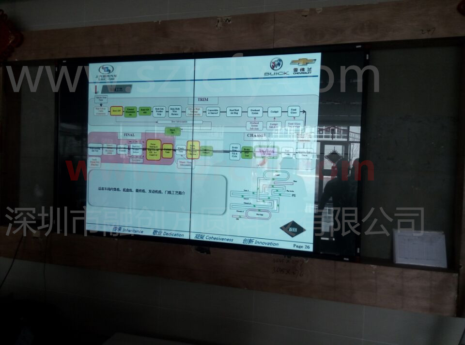 武漢上汽通用工廠展廳2×2窄邊拼接屏真多點觸摸屏項目現(xiàn)場案例