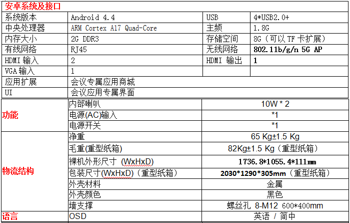 75寸智能交互式會(huì)議機(jī)以高清顯示和智能安卓操作界面與紅外10點(diǎn)觸摸技術(shù)軟硬件相結(jié)合為載體,是智能交互式會(huì)議機(jī)神器,也叫智能安卓觸摸會(huì)議機(jī),便捷會(huì)議平板,無(wú)線投屏?xí)h平板,觸摸電子白板會(huì)議機(jī),智能書寫會(huì)議機(jī),智能會(huì)議平板,或叫智能會(huì)議觸摸一體機(jī)等;主要滿足針對(duì)商用領(lǐng)域的企業(yè)辦公,培訓(xùn)行業(yè)場(chǎng)合,會(huì)議場(chǎng)合,以及休閑討論區(qū)的溝通,展示需求設(shè)計(jì)
