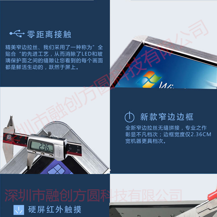 2、紅外觸摸技術:真多點觸摸屏:表面硬度莫氏7級,精準定位觸摸,不漂移,不斷線,書寫流暢,操作手感好,觸摸到邊角,透光率:>95%,耐久性:承受超過6000?千萬次以上的單點觸摸。