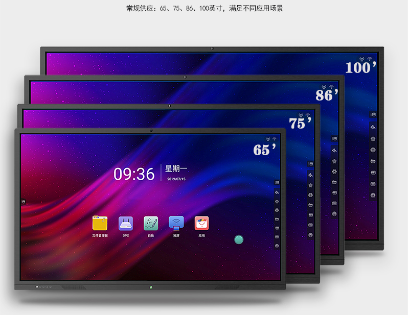 更多會議室觸摸平板熱賣幾款尺寸:65寸,75寸,86寸、100寸