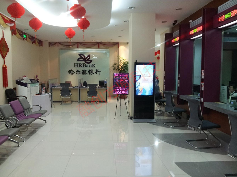 哈爾濱銀行大廳42寸立式觸摸查詢廣告一體機: