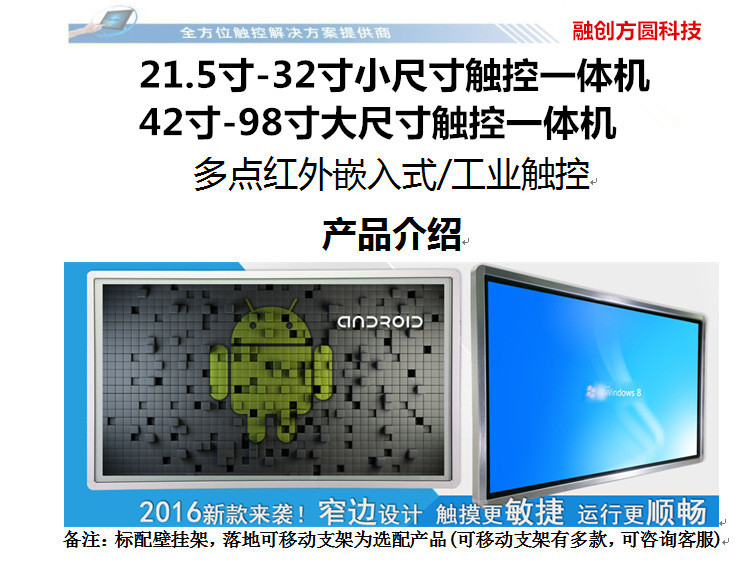 融創(chuàng)方圓紅外觸摸一體機常規(guī)尺寸: