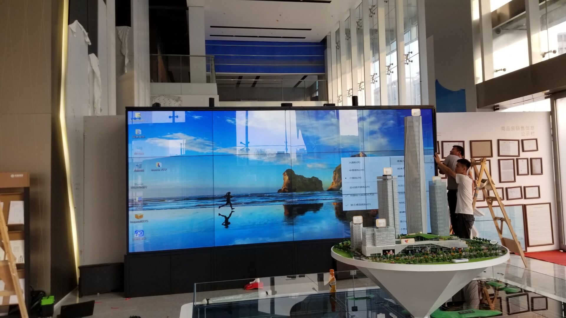 地產(chǎn)銷售大廳大屏拼接屏紅外觸控系統(tǒng)以宣傳地產(chǎn)公司信息,新項(xiàng)目,新樓盤,圖文并茂,音視頻,三維,3D全景方式宣傳地產(chǎn),樓盤樓層,小區(qū)環(huán)境,房間布局等