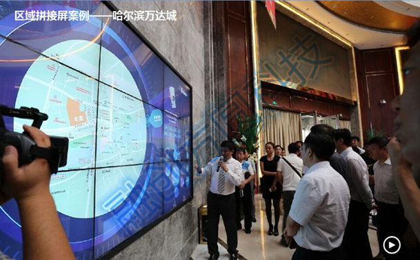 融創(chuàng)方圓55寸2×2拼接觸摸屏入駐深圳某產(chǎn)業(yè)園大廳主要用來可視化數(shù)據(jù)集中...