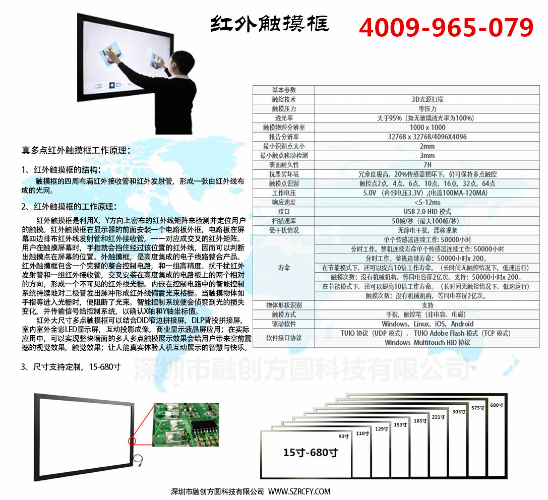 融創(chuàng)方圓大尺寸紅外真多點觸摸框產(chǎn)品應用特征: