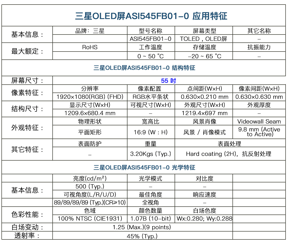 三星55寸OLED透明屏鏡面顯示面板應用特征:
