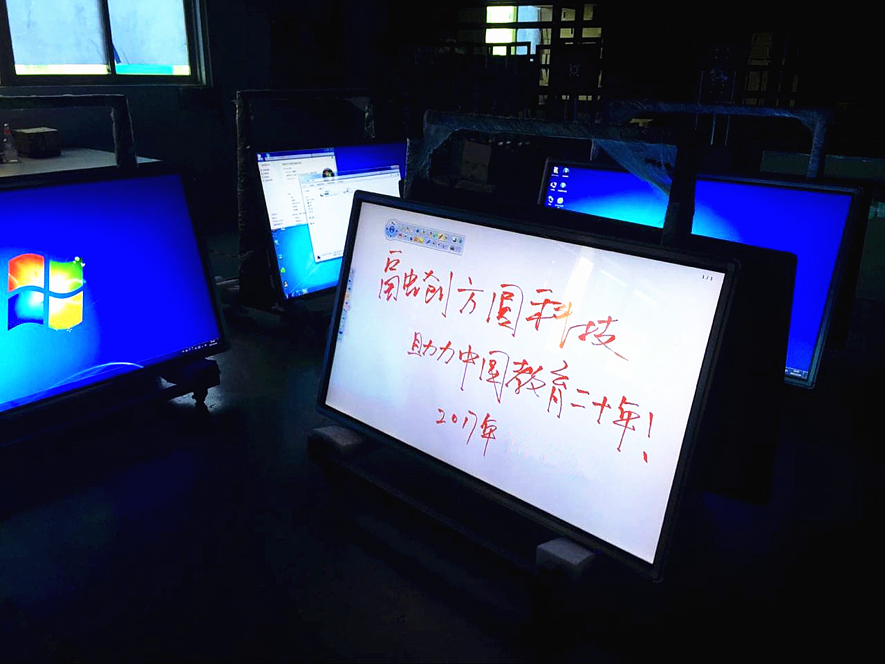 2017年6月黃總采購(gòu)融創(chuàng)方圓一批65寸教學(xué)觸摸一體機(jī)搭配推拉綠板,實(shí)物展臺(tái)安裝在河源龍川縣鶴市大佳小學(xué)多媒體課室用于日常教學(xué)電子白板一體機(jī)應(yīng)用