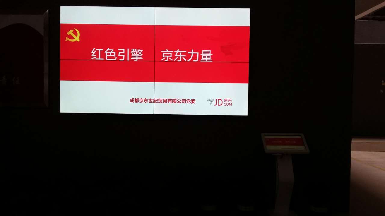 成都京東世紀(jì)貿(mào)易有限公司黨委大廳觸摸一體機(jī)搭配4臺(tái)高清大屏拼接屏案例現(xiàn)場