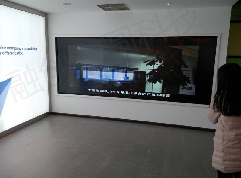 雙邊3.5mm55寸2×3三星拼接屏搭配融創(chuàng)方圓定做153寸拼接紅外多點(diǎn)觸摸屏服務(wù)文思海輝技術(shù)有限公司多媒體展示廳,55寸2×3大尺寸拼接屏觸摸屏一體機(jī)就是一臺(tái)大尺寸觸摸電腦電視墻它可以當(dāng)鼠標(biāo)觸摸單擊雙擊、視頻播放、圖片展示、PPT演示、查閱、上網(wǎng)、演示與互動(dòng)等功能。
