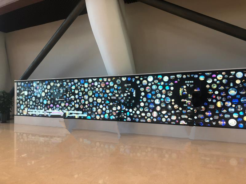 觸摸屏拼接屏圖片墻以靜態(tài)形象墻,圖畫冊結(jié)合多媒體技術(shù)形成可以交互應(yīng)用數(shù)字墻是一款可承載超大容量的數(shù)據(jù)庫,啟動數(shù)字墻,所有數(shù)據(jù)信息以最適中的形式呈現(xiàn)在大眾面前,隨機(jī)選擇一條信息打開,圖片會被突顯并放大,文字信息在其上方顯現(xiàn),其他類信息在其后方處于待命狀態(tài),此時“顯現(xiàn)信息”與“待命信息”展示在兩個完全不同不被干擾的層面相互分離呈現(xiàn),高分辨率顯示,每張圖片界面清晰可見